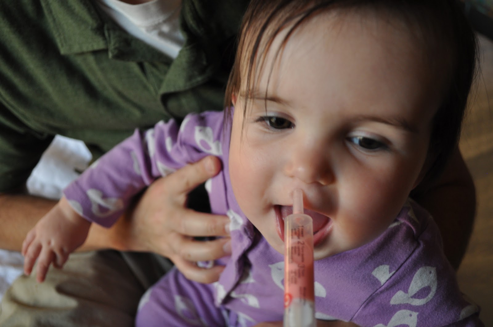 Ok, so some people would say that we're "bad parents" because we didn't have a high chair and fed her sitting in the Bumbo on the kitchen table for about a month. Go search the internet for all the opinions on why Bumbos are terrible. Personally I say, know your kid and don't leave them in the Bumbo unattended (duh.).